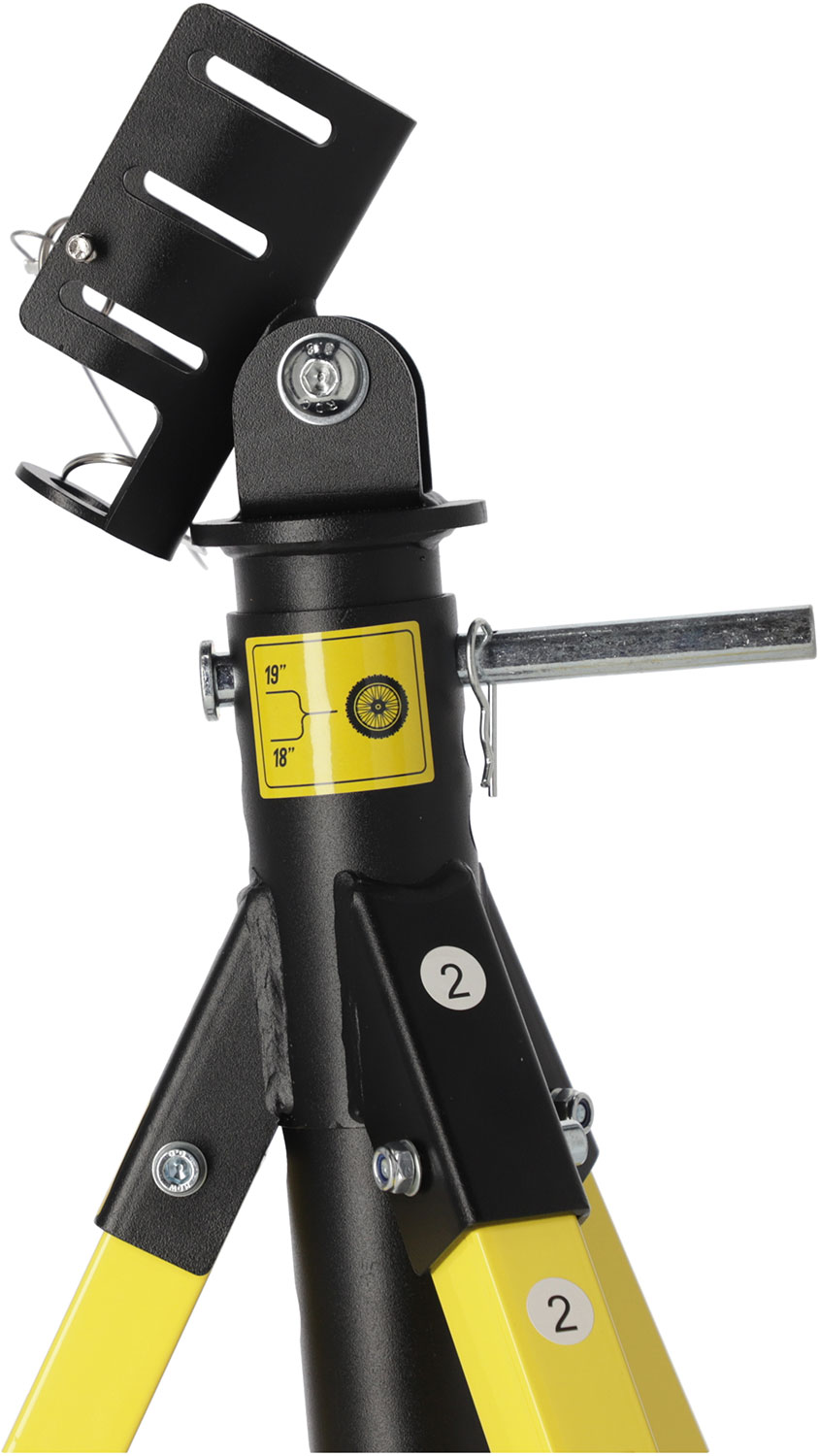 Стойката е изработена от 96% метал, което осигурява висока здравина и дълъг експлоатационен живот. Разполага с 5 отвора за регулиране по стеблото и 3 отвора в основата, за да се адаптира към различни модели мотоциклети. Съвместима е с джанти 18” и 19”.