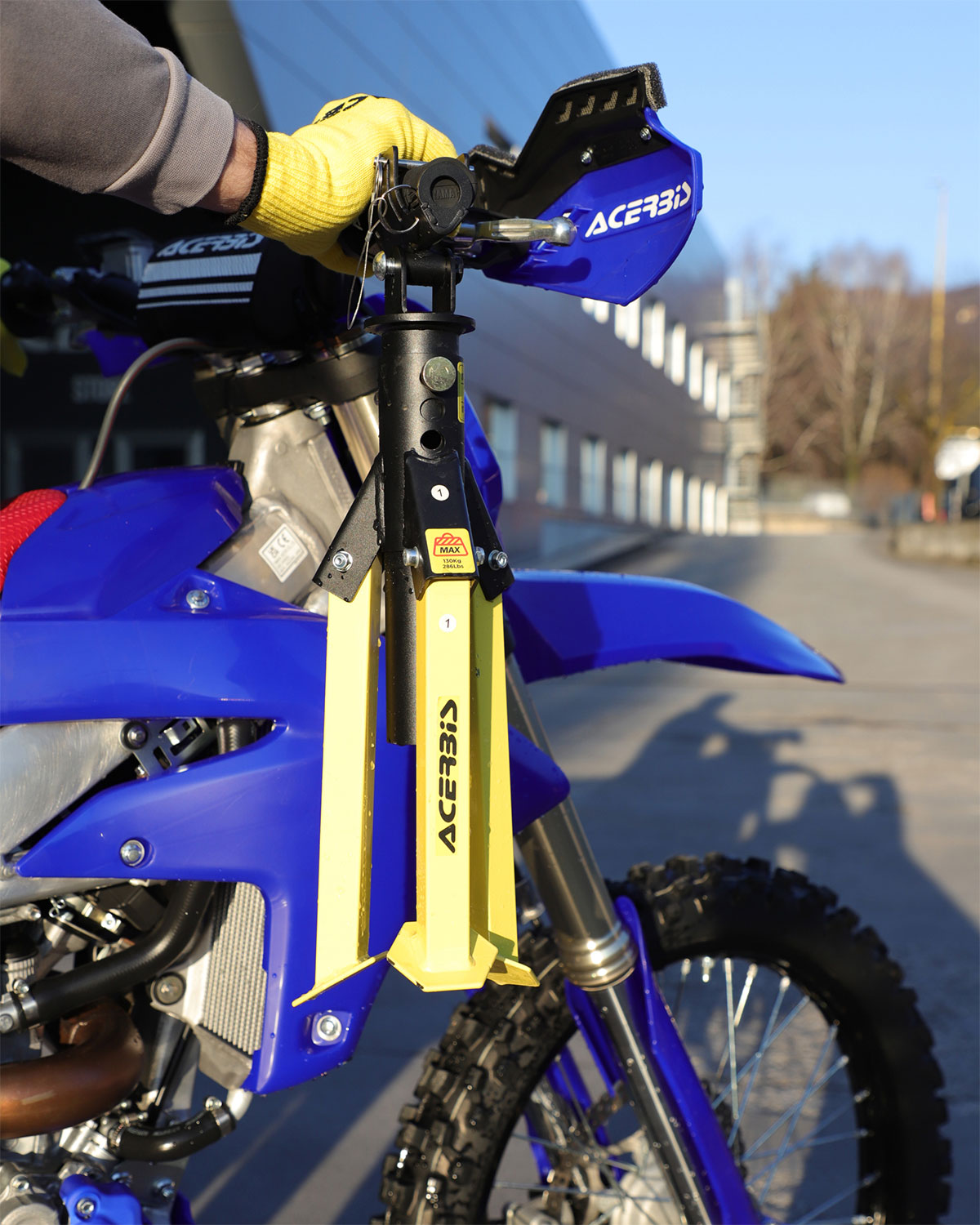 Acerbis Splashstand е практична и многофункционална стойка за мотоциклет, създадена за паркиране, поддръжка и измиване. Благодарение на две работни позиции, тя комбинира функциите на два различни типа стойки в едно компактно решение.