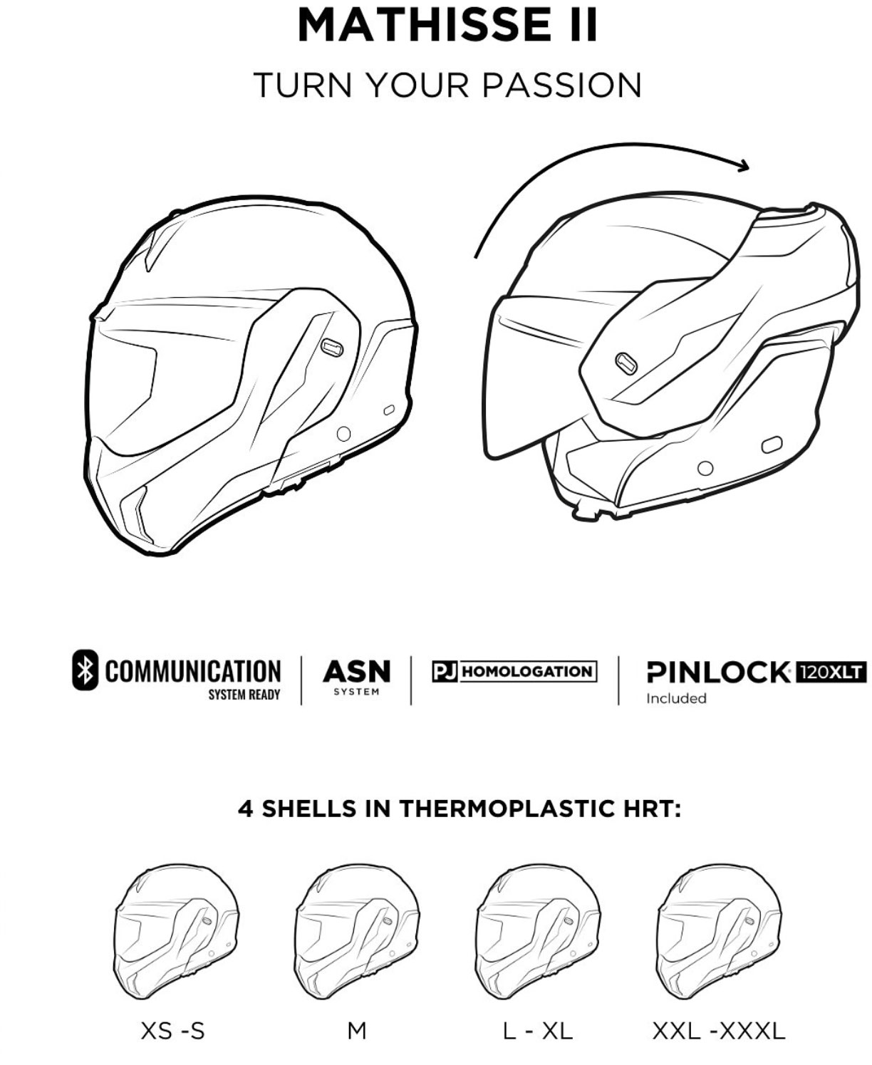 Външна обвивка HRT (High Resistant Thermoplastic) в четири размера - един за XS-S, втори за M, трети за L-XL и четвърти за XXL- XXXL за отлично прилягане.