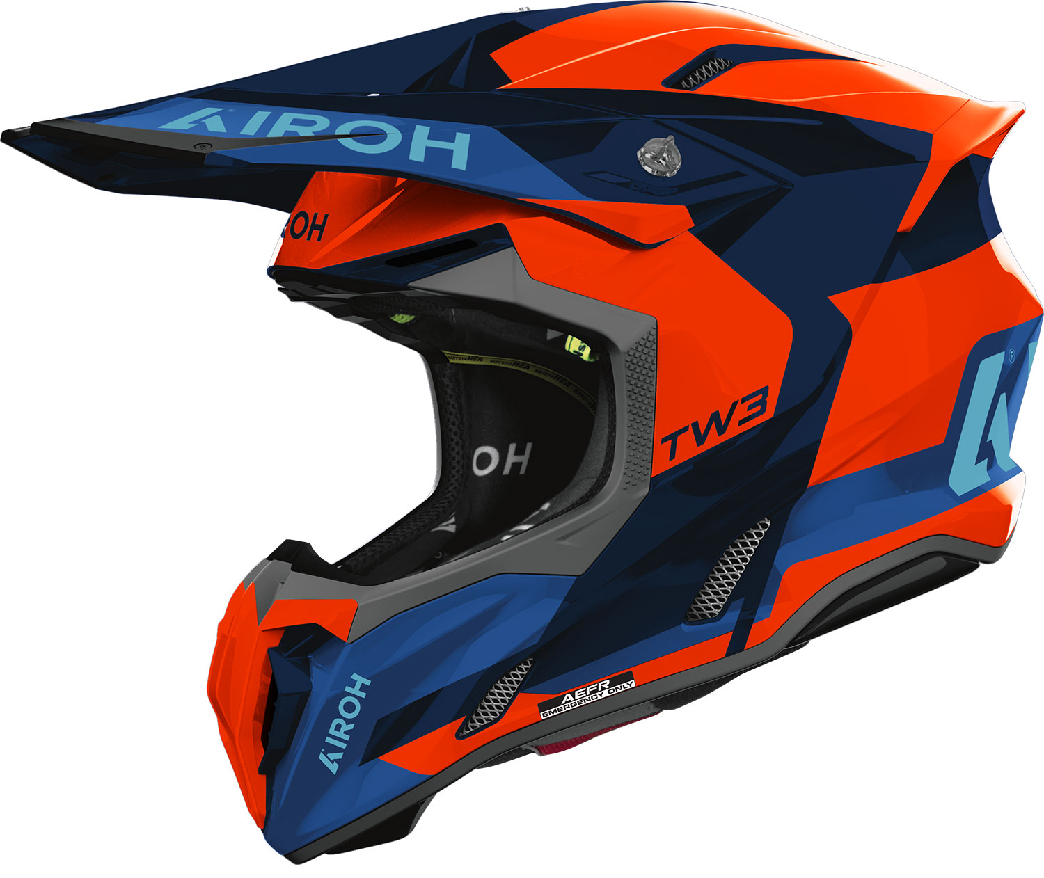 Twist 3 е с подчертано агресивен дизайн, актуални графики, ASN (Airoh sliding net system) подплата, AEFR (Airoh Emergency Fast Release) система и подготвен за употреба с Bluetooth комуникационна система.