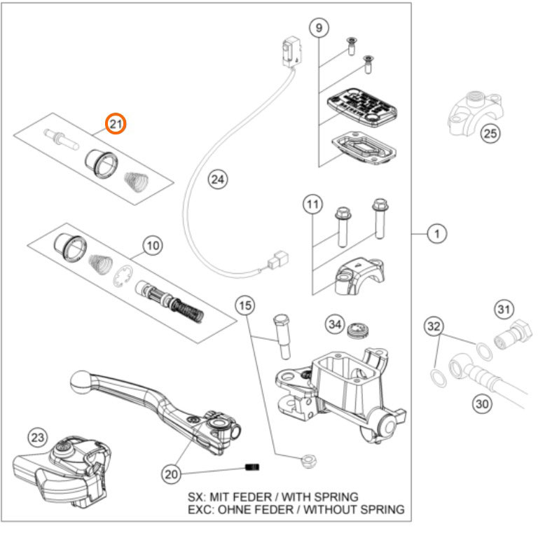 KTM Ремонтен комплект ръчка предна спирачка KTM OEM EXC/EXC-F 14-26